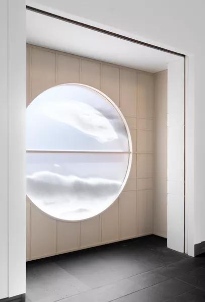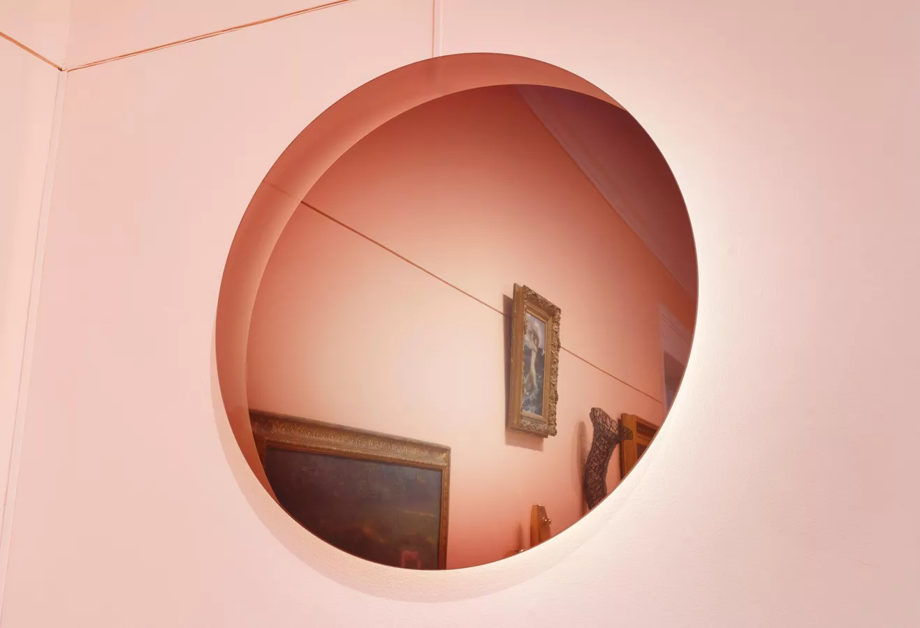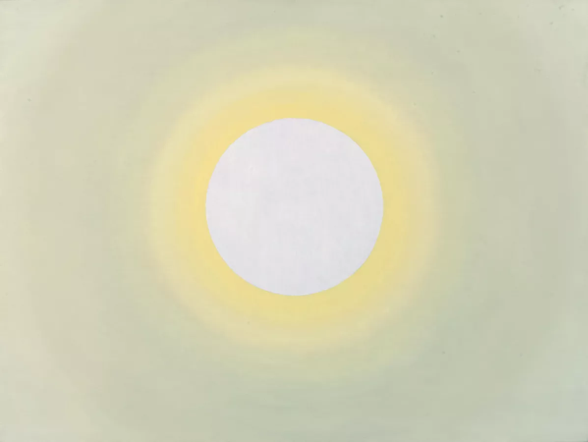 While atmospheric perspective is a concept more typically witnessed in painting, Loughlin has used fused glass to explore this sensation in her most recent work solari (2024). Installed above the eastern or Fish Gates entrance of the Art Gallery of South Australia, the large-scale disc is both lens and mirror to subtle shifts in changing daylight. As its title suggests–sol being the Latin word for sun and solaris meaning solace–the seemingly austere glass disc both situates and consoles us. It constitutes a slow-moving image of the unceasing cosmological events that shape and govern our lives.