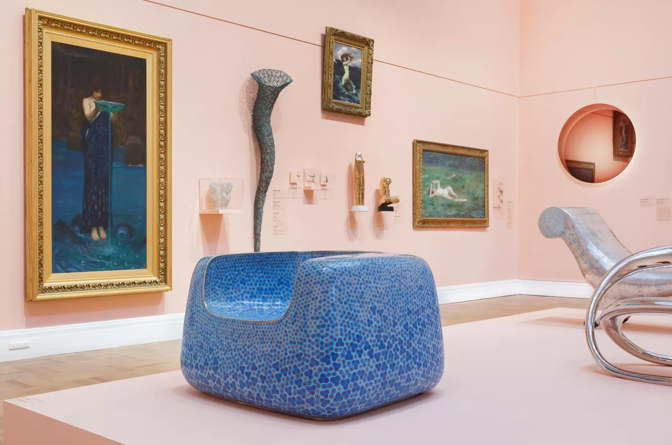 Thirty-seven years after the acquisition of the LC-1, AGSA has acquired a second work by Newson, Cloisonné Blue Chair, 2017. The piece is from his series of furniture that utilises the metalwork technique of cloisonné a labour-intensive enamelling process that employs differently coloured vitreous enamel, which is held in place or separated by strips of metal wire and then multi-kiln fired. This technique dates to the ancient world and is perhaps most famously known in the context of the decorative arts produced in East Asia.