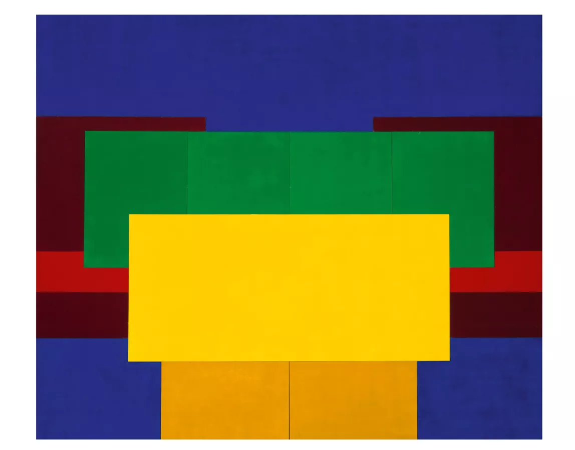 Sydney Ball, born Adelaide 29 October 1933, died Sydney 5 March 2017, Banyon Wall, 1967-68, Collinswood, South Australia, synthetic polymer paint on canvas, 330.2 x 396.2 x 4.5 cm (overall, 12 panels); Gift of Mr Elliot Aldridge 1970, Art Gallery of South Australia, Adelaide.