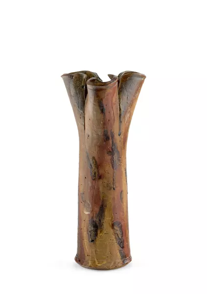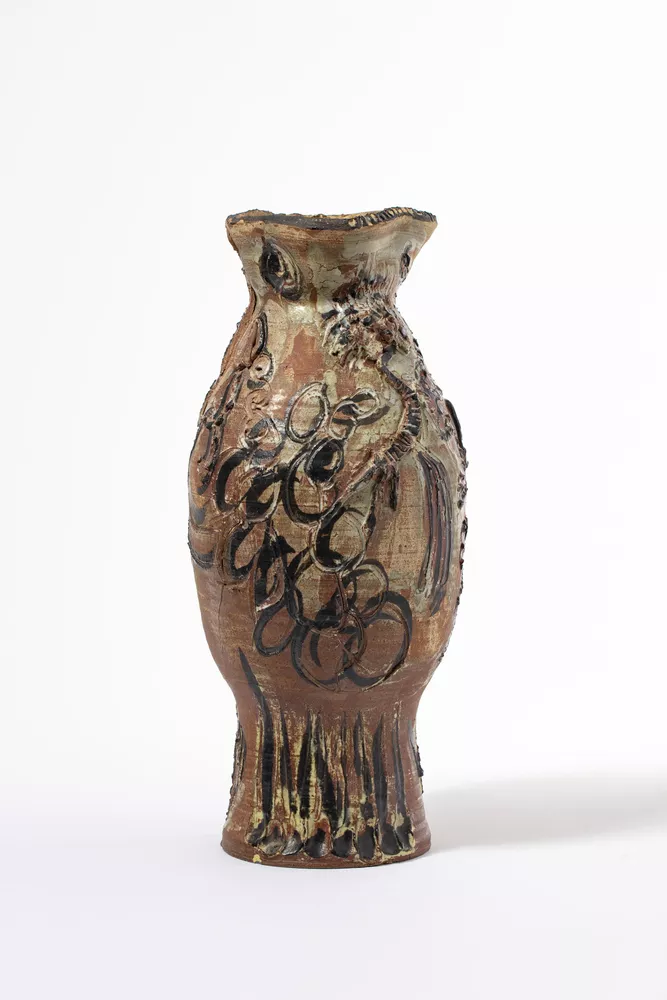 Milton Moon, born Melbourne 1926, died Adelaide 2019, Sculptural vase, 1960, Tarragindi, Queensland, stoneware, 41.3 cm; Powerhouse Museum Collection Purchased with the assistance of the Crafts Board of the Australia Council and Monahan, Dayman & Adams Pty Ltd, 1986, © Estate of Milton Moon, photo: Stuart Humphreys.
