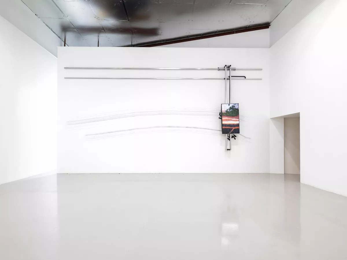 Robert Andrew, Yawuru people, Western Australia, A Connective Reveal – Country, 2021, soil, aluminium, string, electro-mechanicals, 120.0 × 180.0 × 240.0 cm; Courtesy of the artist and Milani Gallery, Brisbane/Meeanjin; photo: Louis Lim; photo: Louis Lim.