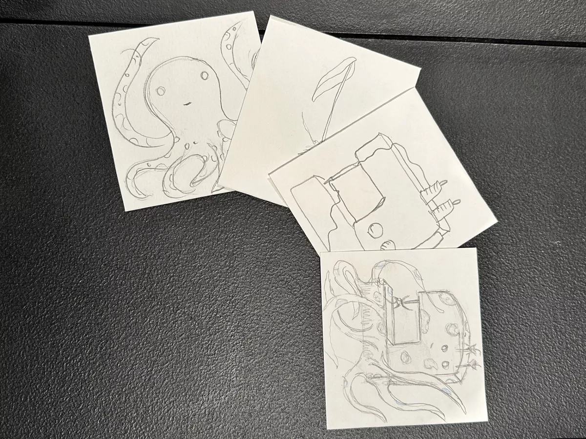 - On a fourth card draw a sketch that combines all three elements. For example: a PotatoFishCar.