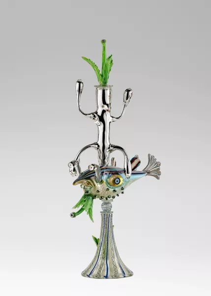 Tom Moore, born Canberra 1971, Lavish Gnashing, 2021, Adelaide, blown glass, 68.0 x 21.0 x 21.0 cm; In memory of Jane Yuile, Art Gallery Board member (2014-2023), through the South Australian Artists Fund 2023, Art Gallery of South Australia, © Tom Moore.