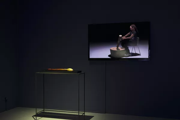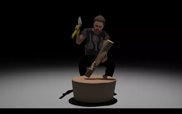 Darkson’s challenge to the utopian promise of technology continues in his work Smart Object (2020). Created for Experimenta: Life Forms (2021-23), Australia’s leading triennial of media art, Darkson responded to the premise and pursuit of Artificial General Intelligence with a two-part multi-media installation; a carved wooden plongi (club) guided by the teachings and knowledge of Ngarrindjeri Elder Uncle Moogy and Allan Sumner from ACA studios, and a looped animation of Darkson’s 3D avatar performing the carving process using motion capture technologies.
