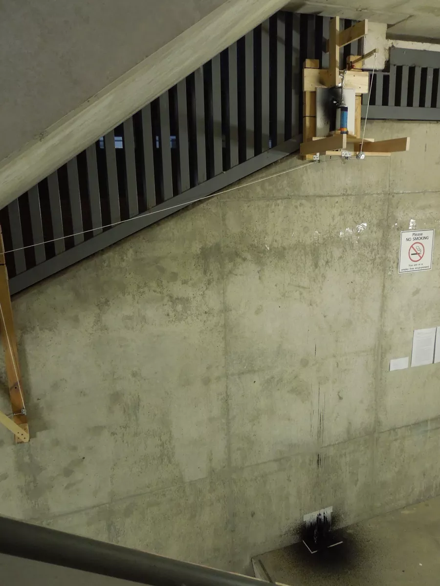 An early work that typifies such an approach is Darkson’s interactive installation appropriate[d] (2014) that temporarily occupied a concrete stairwell on the grounds of the University of South Australia. Using an elaborate system of pulleys and a timber armature, the opening and closing of the stairwell door triggered an aerosol can to spray a black dot onto a white MDF surface. Through repetition, Darkson’s riff on the dot iconography deeply connected to a history of central desert painting devolved into a mess of dripping wet paint; in handing authorship over to the public, his role and categorisation as an Aboriginal artist was challenged.