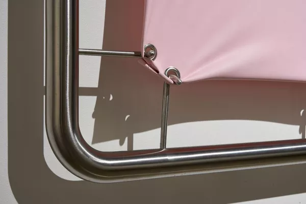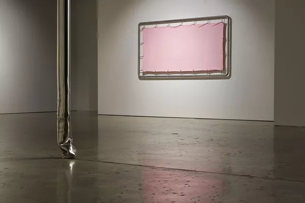 As a sculptor, Bohunnis has produced immersive installations using wax, silicone, linen, leather and latex in contradictory combinations with metal, and each other. The results are room-sized ensembles of sculptures – material gestures – charged with allusions to the body, sex, futility, violence and control. Staged in tense relation to one another, Bohunnis’ objects often take on anthropomorphic (human-like) or bodily qualities: a diagonal steel shaft impales a plump latex pillow, forcefully pinning it to the wall; a block of pink jelly wax bows mournfully in the thin grip of two tarnished metal rods; stainless steel hooks stretch a taught plane of latex like freshly flayed skin. Bohunnis undercuts the utility and functionality of her chosen materials, instead casting their given meanings and associations into a state of flux – aluminium undulates like a landscape, steel sheets are draped like textile, silicone transforms into flesh. “The way I see materials and identity is very similar. This one thing is served to you and it appears all the same; a tube is a tube, a piece of linen is a piece of linen. But when you add or subtract from it, it creates a different conversation…it can transform into many different things.”[2]