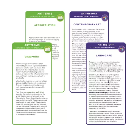 The AGSA Art School in a box is the 'one-stop-shop' for teaching students about art elements, art principles, art terms and art history. This resource will support you in delivering authentic art lessons that use artists and their stories as a starting point.