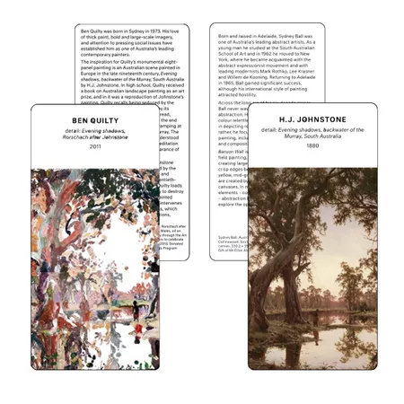 The AGSA Art Cards are versatile and can be used in the Gallery, classroom or at home. Of course, the entire set of cards can be explored by children independently or in groups; however, with over 100 cards to choose from, this might be a little overwhelming and unmanageable in a classroom setting.