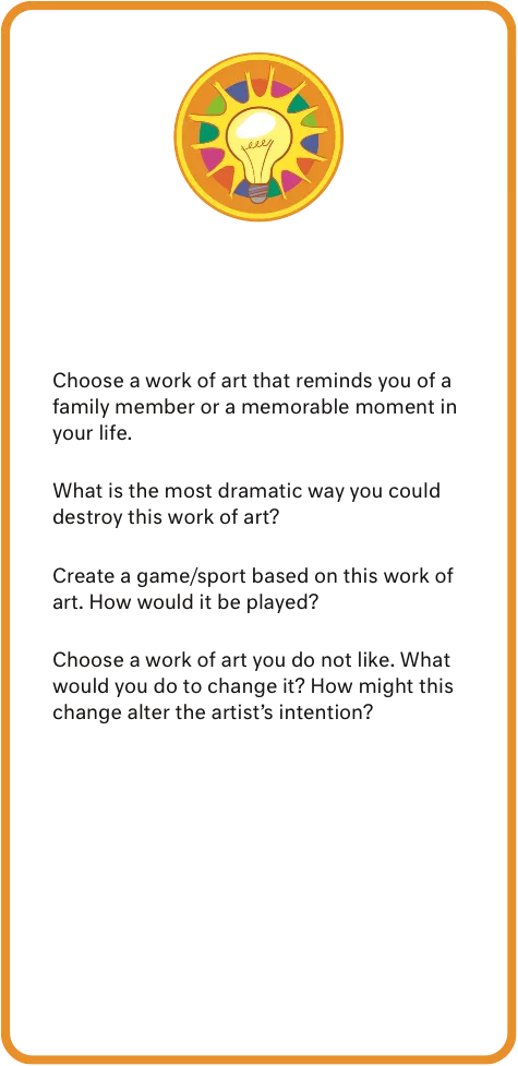Wild cards are our Curiosity Cards, which can be paired with any work of art in the Gallery or in the classroom. They are ideal prompts for engaging with works of art and practising critical and creative thinking.