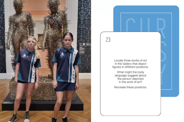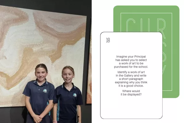 A self-guided visit can often be a daunting experience with students seeing works of art in situ, sometimes for the first time. The Curiosity Cards assist you to plan a visit to a gallery, without the pressure of disseminating content in the exhibition space. Rather, slow down the gallery experience by providing opportunities for students to make connections and respond, emphasising that every student’s opinion is acknowledged and valid.