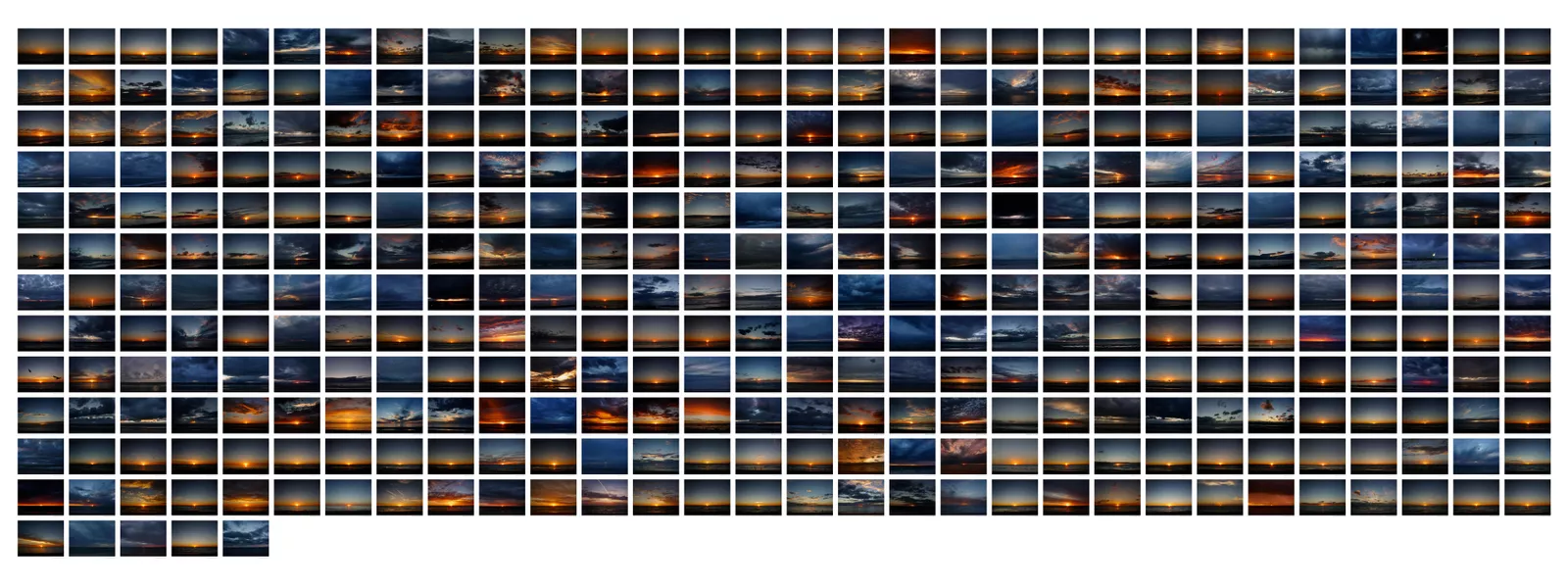 Trent Parke, born Newcastle, New South Wales 1971, 365 sunsets, Adelaide, 2010-11, Adelaide, 365 pigment prints; Gift of Macquarie Group through the Art Gallery of South Australia Contemporary Collectors Trent Parke Appeal 2015, Art Gallery of South Australia, Adelaide, © Trent Parke, courtesy of Hugo Michell Gallery, Adelaide, Michael Reid Gallery & Magnum Photos.
