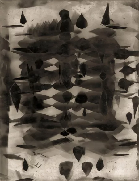 Influenced by the expermentations of Man Ray and Lázló Moholy-Nagy, Nalini Malani’s abstract photograms were explorations in the play of light on geometric forms and architectural shapes. They were created by placing paper cut-outs and objects for lengths of time under the enlarger on photosensitive bromide paper. Look at other examples where artists have used photograms, including by those mentioned above. Make a selection of images that you can find online. Can you identify the objects they have used to make their photograms?
