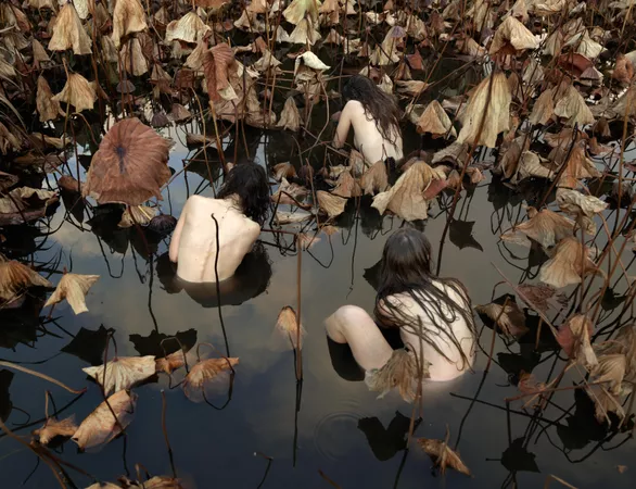 Dean's series In Our Nature explore humans’ connection to nature. The photographs depict figures placed in natural landscapes – almost like specimens – as a means to explore their strong and important relationship between humans and nature. Photographed in the dense foliage and ponds of the Adelaide and Mount Lofty Botanic Gardens, In Our Nature follows the seasons of spring, summer, autumn and winter to draw attention to aging and the cycles of life.