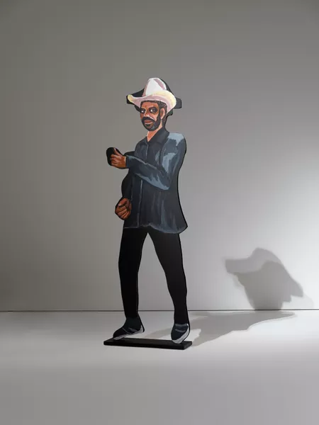 His paintings offer a wry look at the politics of history, power and leadership from a contemporary Aboriginal perspective. Namatjira often positions himself in this history – out of place and out of time – and in doing so he helps us to reconcile our complex and traumatic pasts. Humour and parody are his tools for staging difficult conversations about Australian history and society.