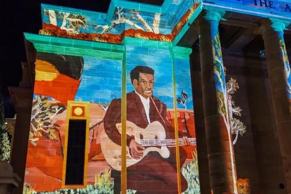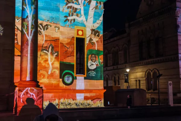 'Going out Bush' by Vincent Namatjira was presented as part of City Lights, Illuminate Adelaide 2022