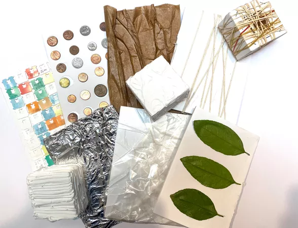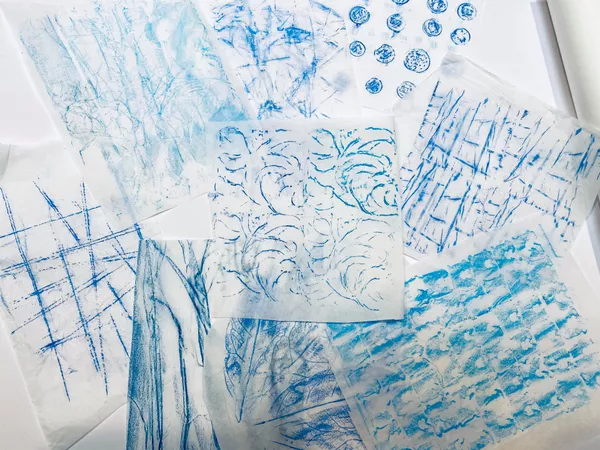 Create a ‘blueprint’ of the place where you live by taking rubbings of surfaces using only different shades of blue. Consider your composition, including balance and repetition. Tip: We have created texture boards from things found around the home to use for our rubbings.