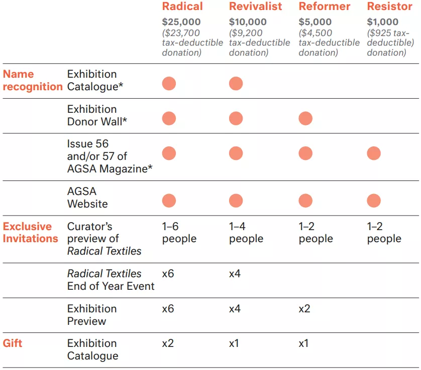 Donations to the Contemporary Collectors' Radical Textiles Campaign directly support the presentation of this major exhibition.