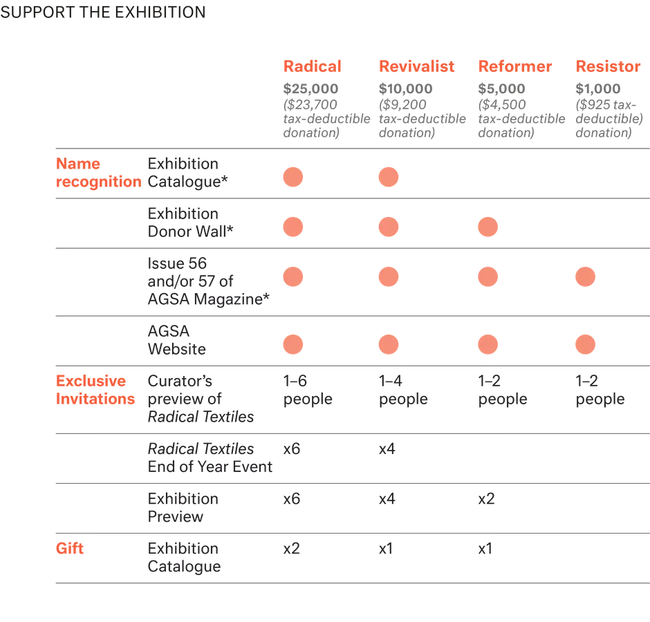 Donations to the Contemporary Collectors' Radical Textiles Campaign directly support the presentation of this major exhibition.