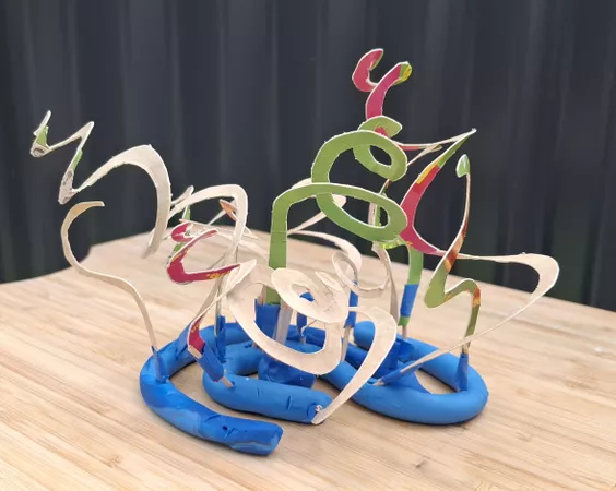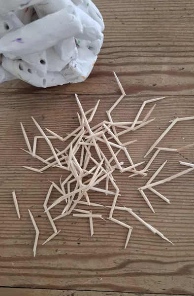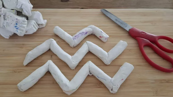 - Stand your shapes upright in a base of plasticine, clay, or sand. Repeat shapes to create patterns and rhythm.