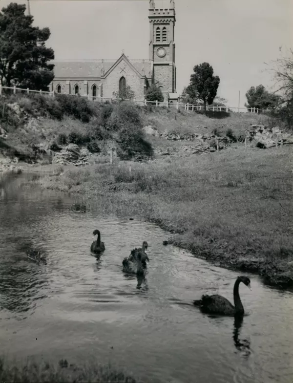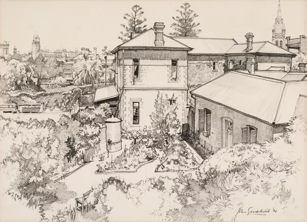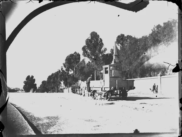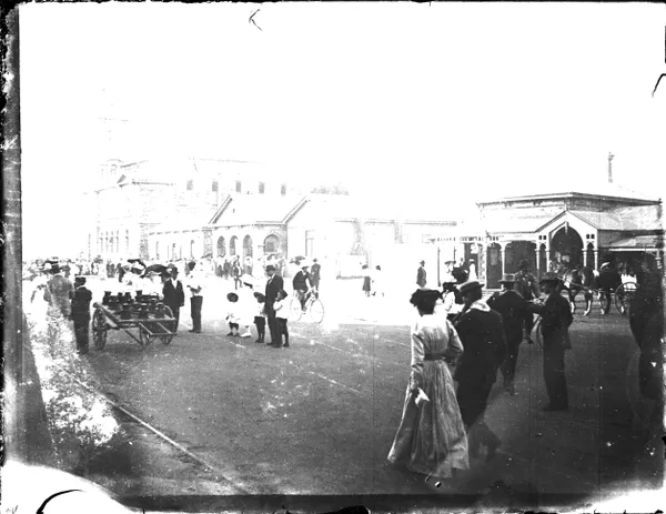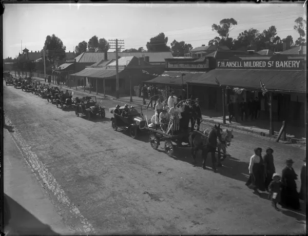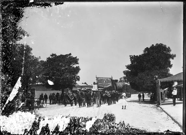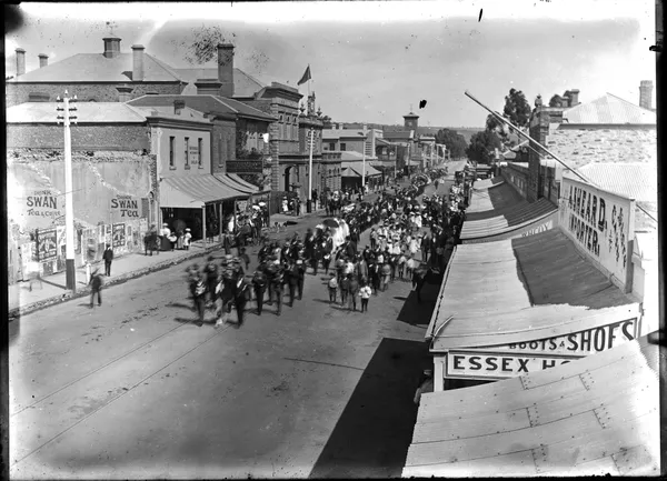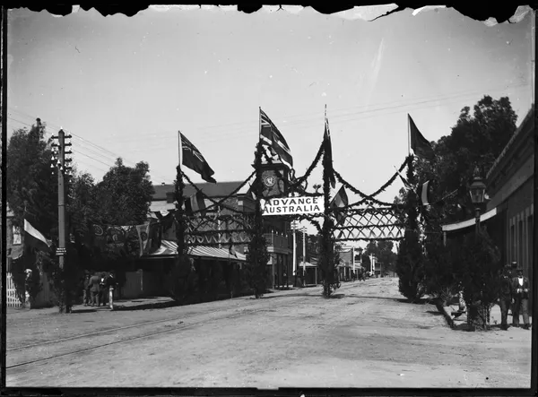 Work of ArtR E SheedyStreet decorated with garlands, flags and 'Advance Australia' bannerc.1900-20