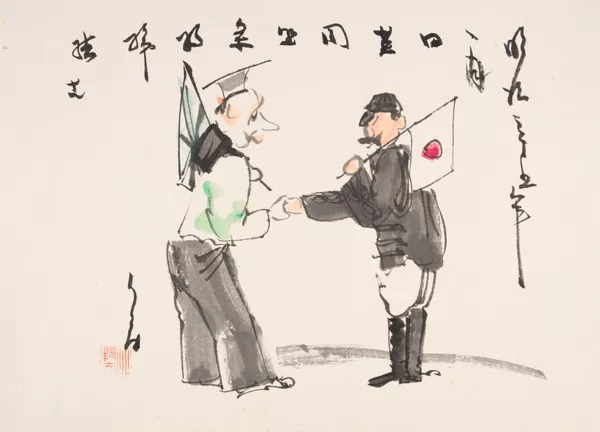 Foreign-looking Manchurian Horsemen on an Expedition to Observe the Japanese Camp in the Distance Near Sauhoku (Sôkakô fukin Nichijin enbô Manshû kihei isô shutsujin no zu)
