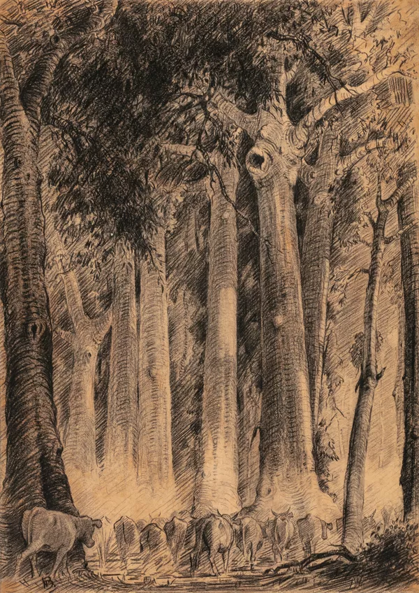 Forest scene; verso: drawing possibly of landscape(from the Harold Cazneaux Family Archive)