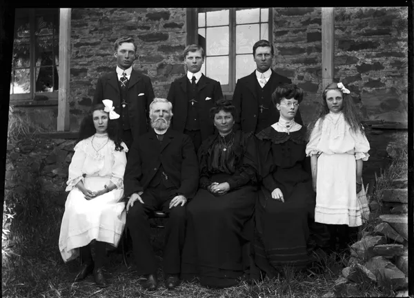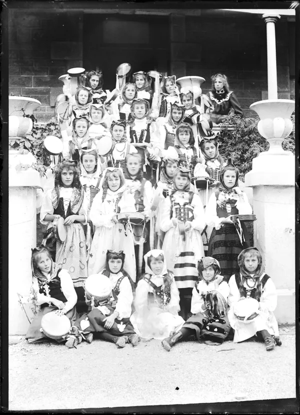 Work of ArtUnknownGroup portrait of children in outdoor surrounds, woman wearing fox fur at rightc.1900-20