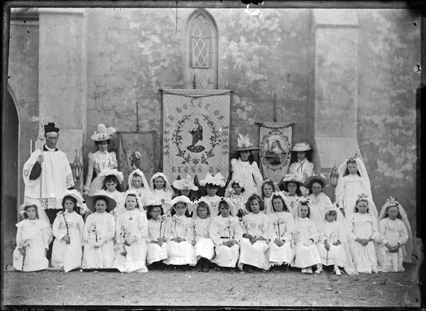 Work of ArtEdmund DiederichGroup portrait of children in church, hymn boards at left and rightc.1890-1923