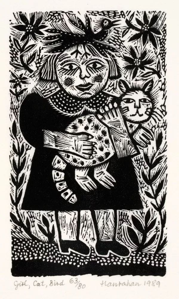 Girl, cat, bird