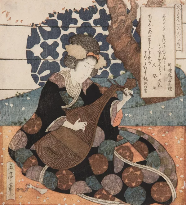 A woman playing a lute (biwa)
