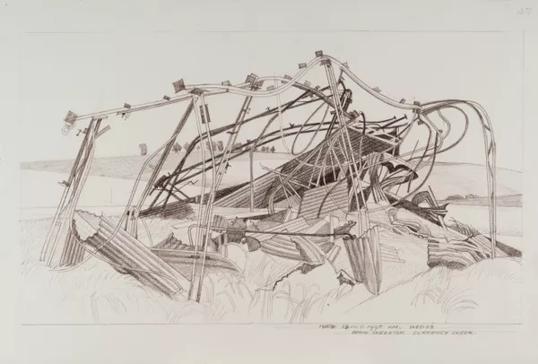 Barn skeleton, Currency Creek, Tues 22 Aug am; Wed 23
