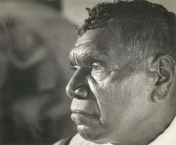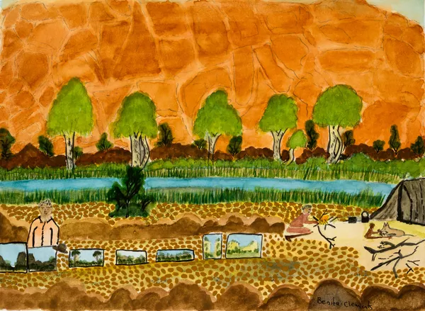 Albert Namatjira painting with his sons Oscar & Enold. Travelling everywhere painting an drinking tea.