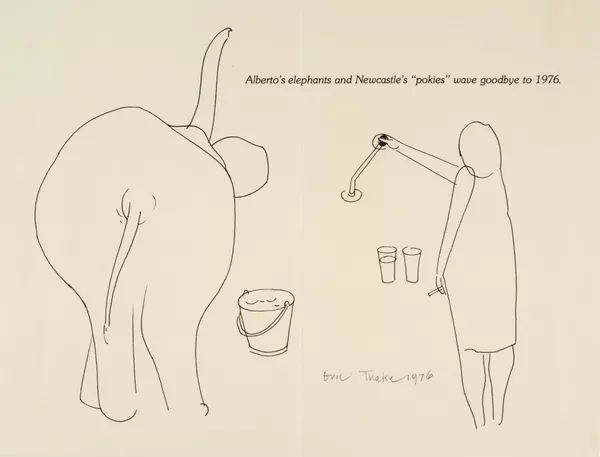 Alberto's elephants and Newcastle's "pokies" [Christmas card]