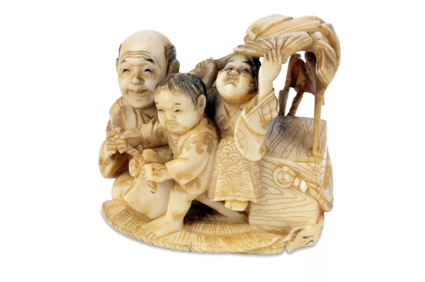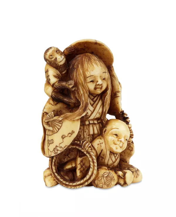 Netsuke, pedlar of soap bubbles (Tamaya)