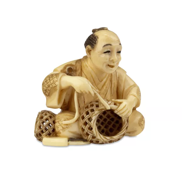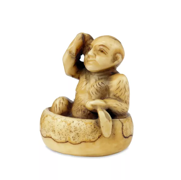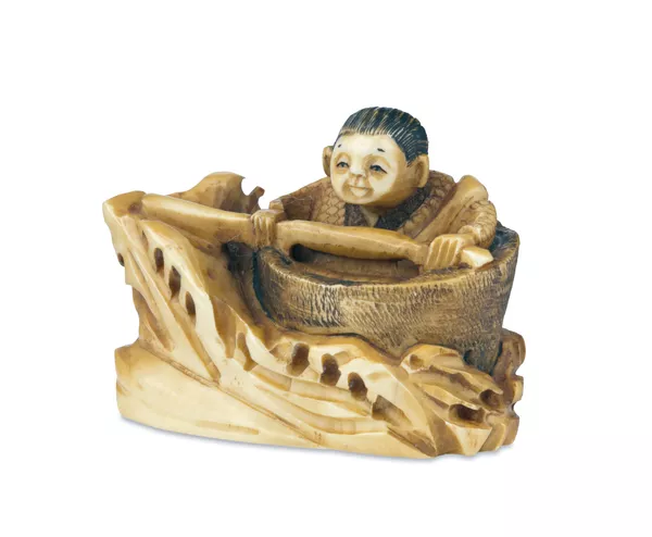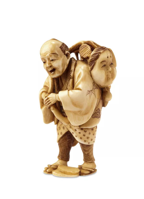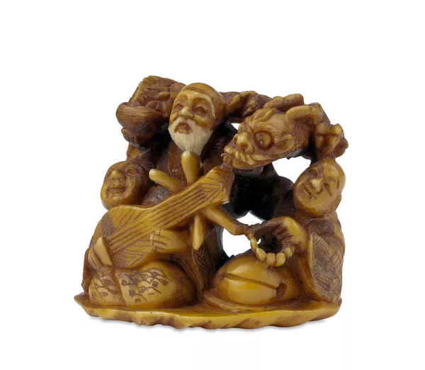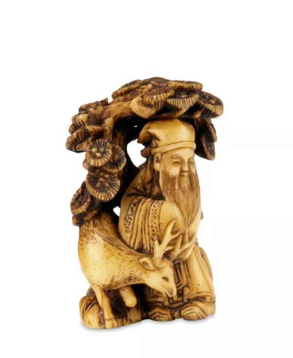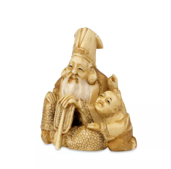 Work of ArtJapanNetsuke, Jurojin, one of the seven gods of good fortune, and chinese child (karako)late 19th century