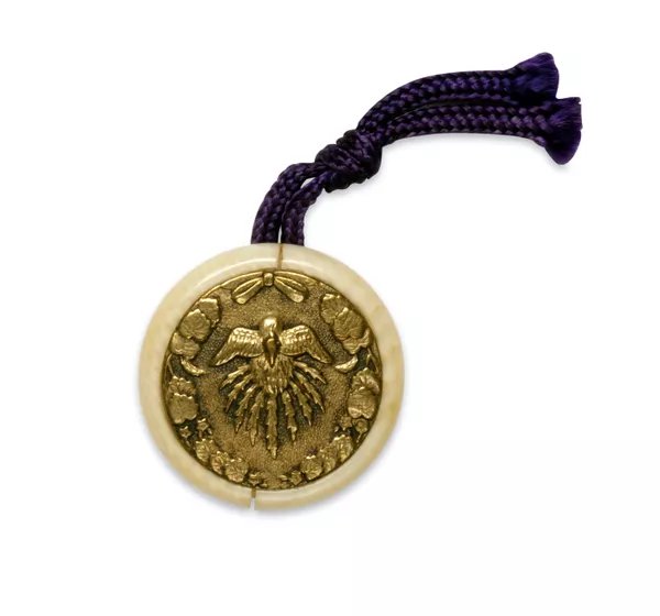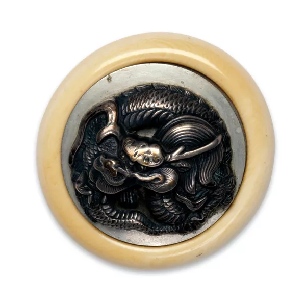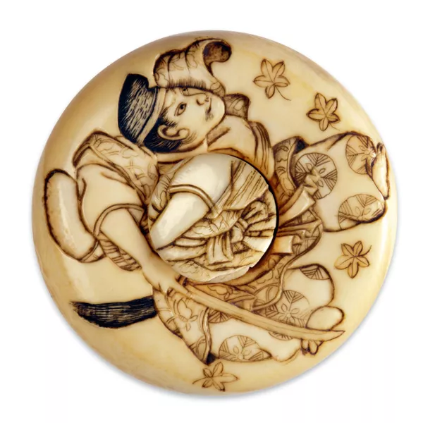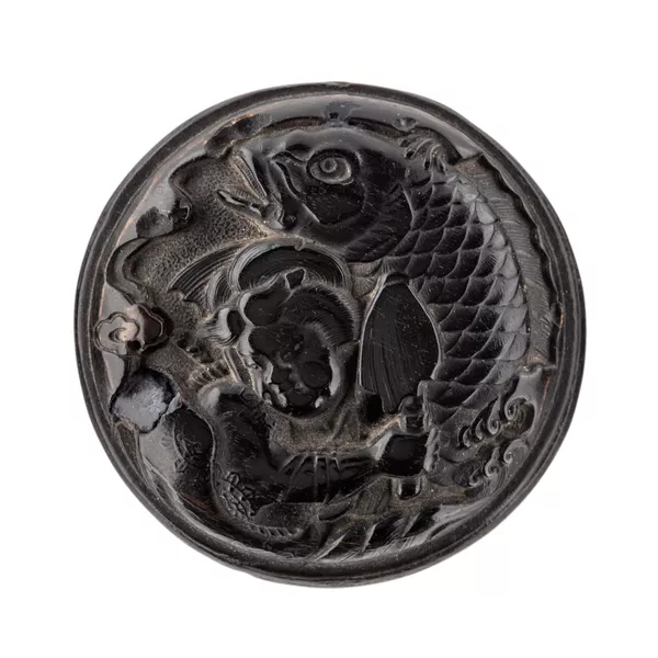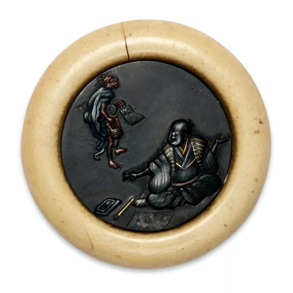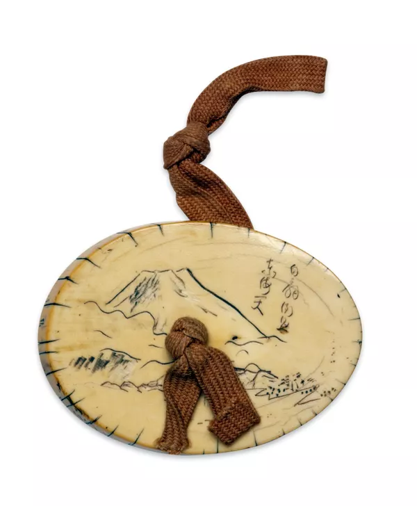 Work of ArtJapanNetsuke, Kagamibuta, with Phoenix and paulownia leaveslate 19th-early 20th century