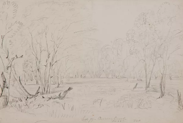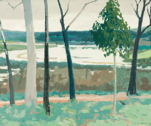 Work of Artattributed to Edmund DiederichCurve of road in foreground, white gate and pines in distancec.1890-1923
