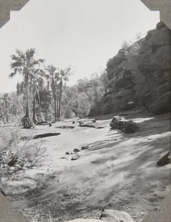 Dry watercourse and palms, Palm Valley