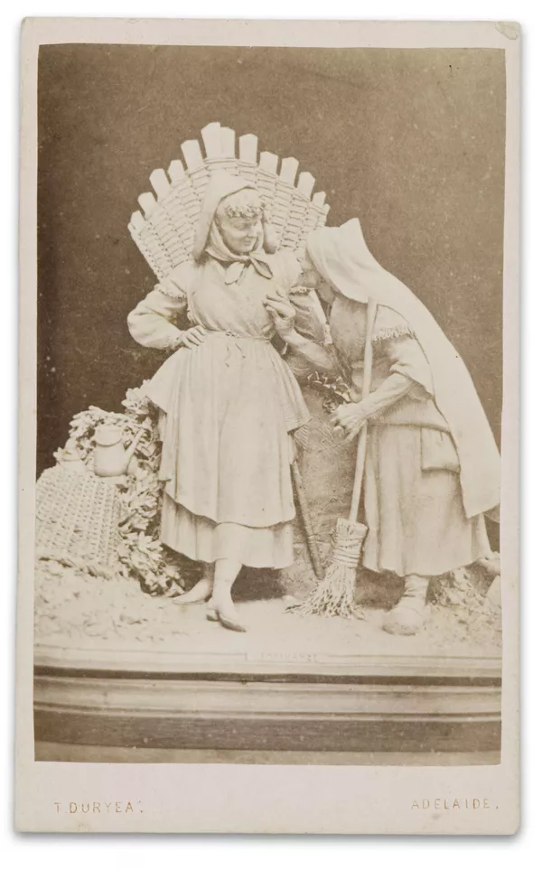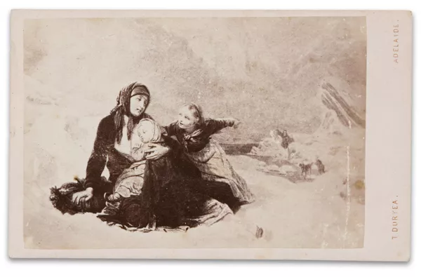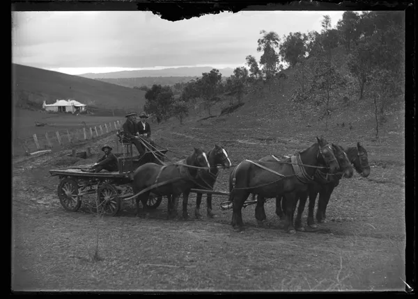 Carriage travelling on unsealed road, Clare Main Street in distance