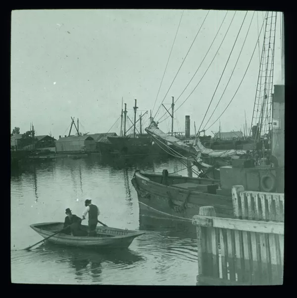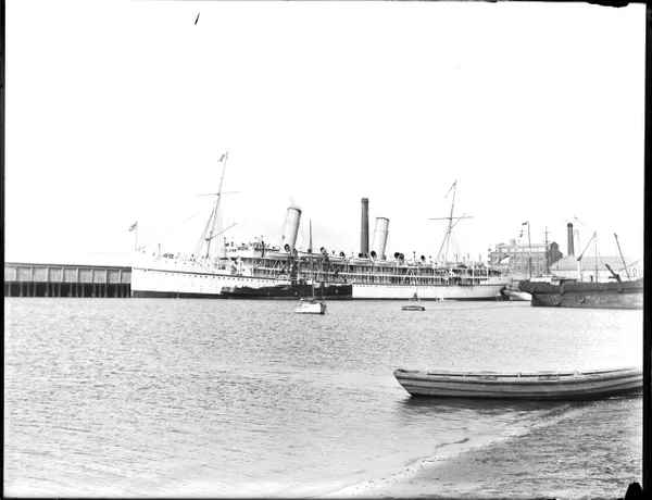 View of Goolwa with the 'Lady Augusta' approaching the jetty