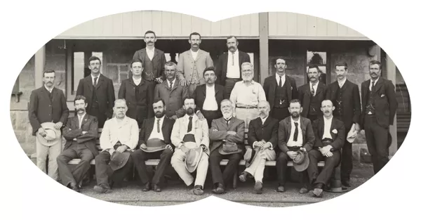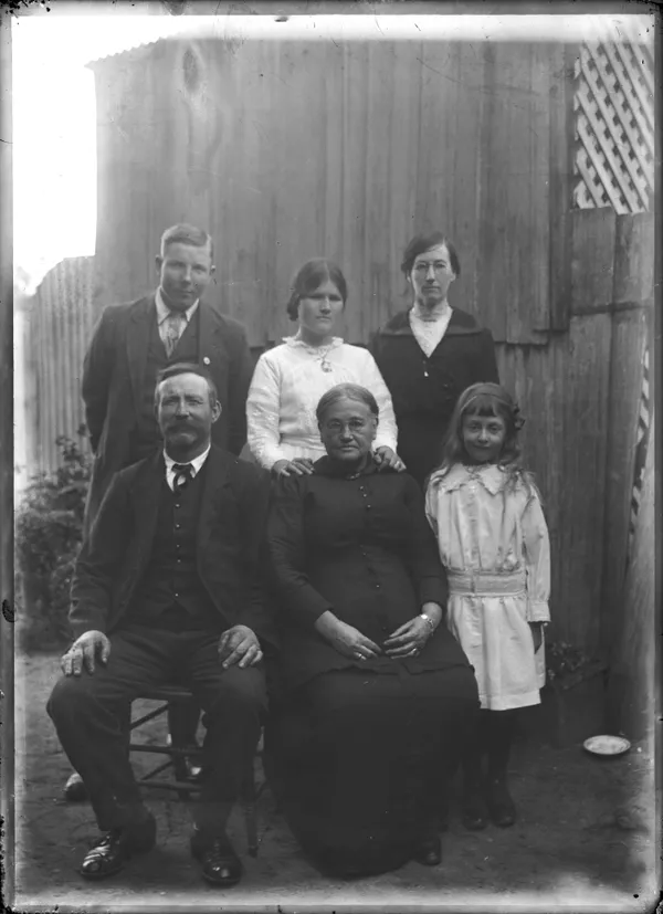 Work of ArtClarence Albani(a) TownsendGroup portrait set against facade of corrugated ironc.1915-26