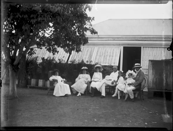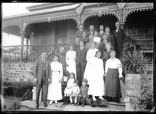 Work of Artattributed to Edmund DiederichGroup gathered on verandah of double storey housec.1890-1923