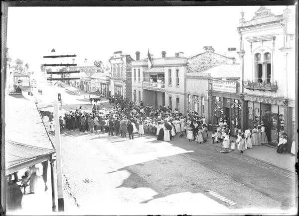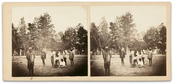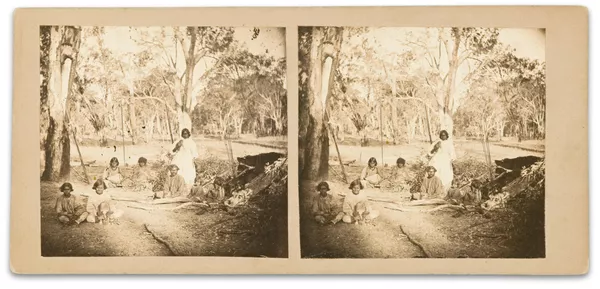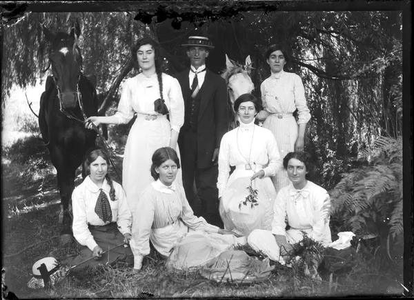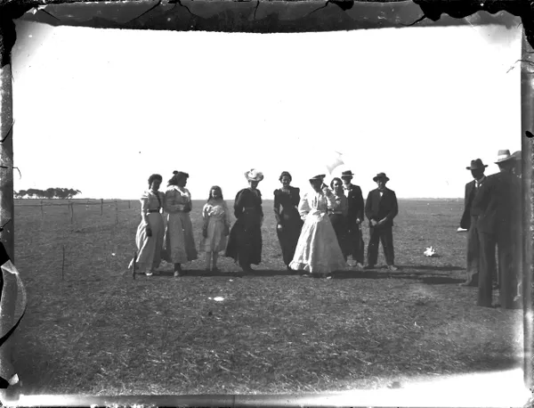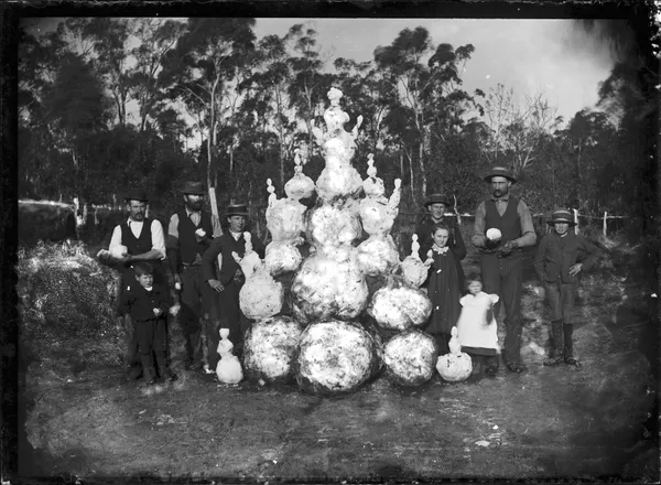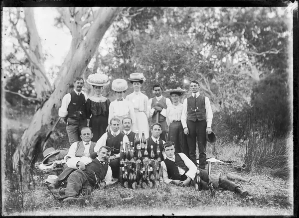Work of ArtUnknownGroup gathered in bush surrounds, boys wearing boater hats in foregroundc.1900?