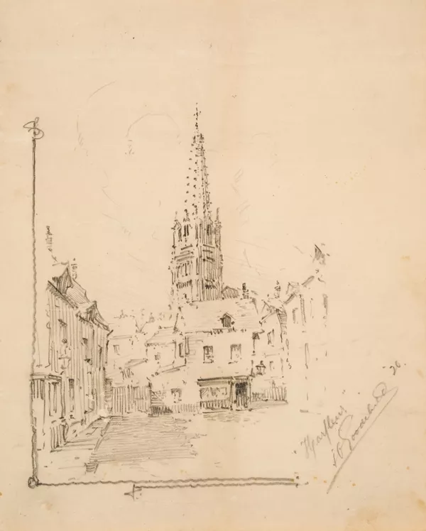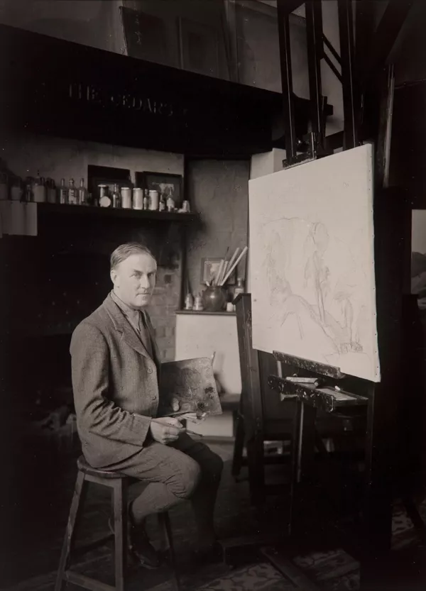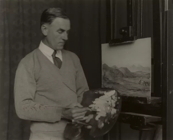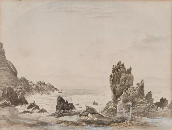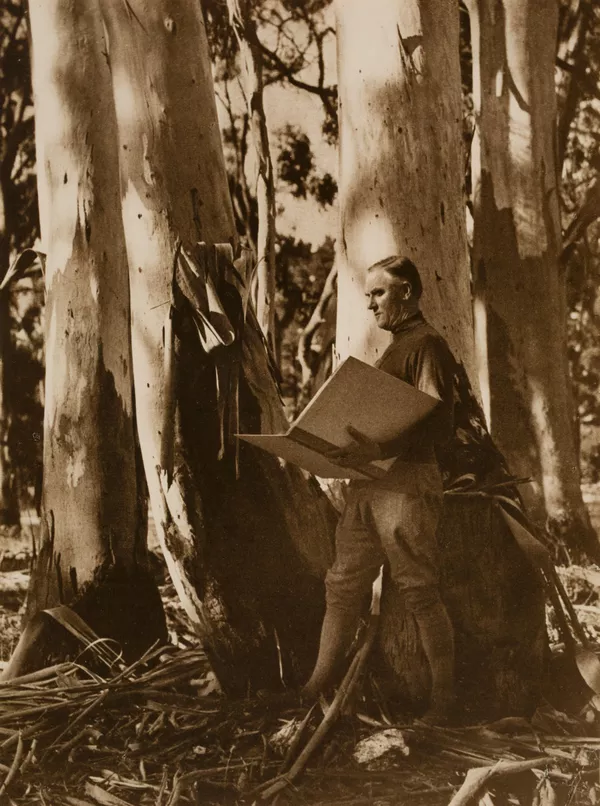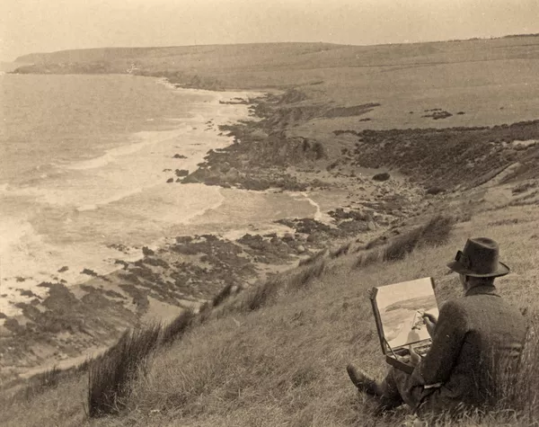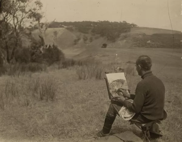 Hans Heysen sketching in the open air, looking south-west from the Bluff (Rosetta Head) near Victor Harbor