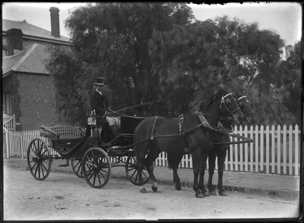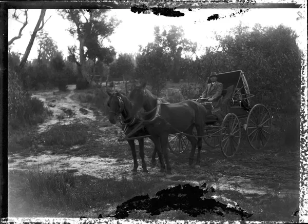Work of ArtEdmund DiederichGentleman driving two horse carriage, road receding at leftc.1890-1923