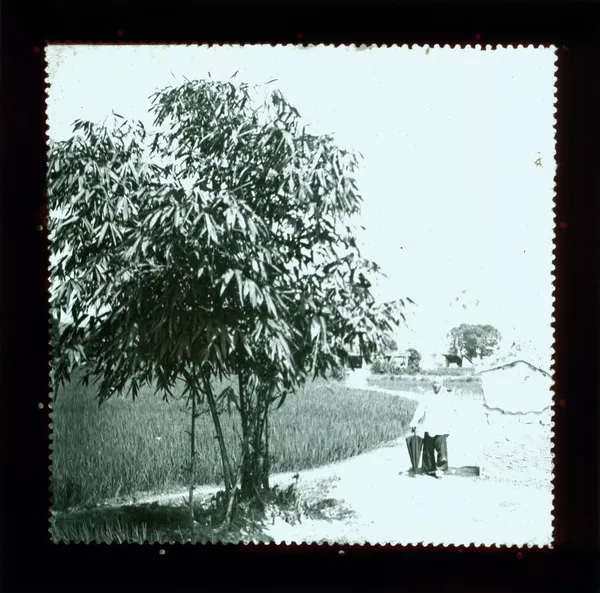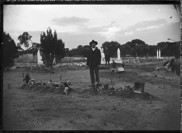 Work of ArtEdmund DiederichGentleman standing in cemetery, decorated plots in foregroundc.1890-1923