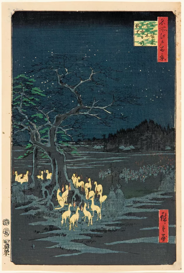 New Year's Eve, Fox-Fires at the changing tree, Ôji (Ôji shôzoku enoki Ômisaka no kitsunebi)
