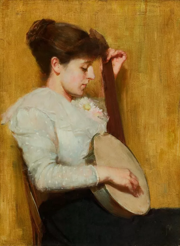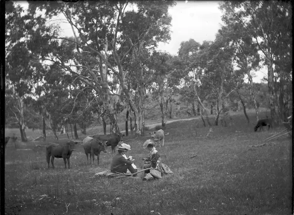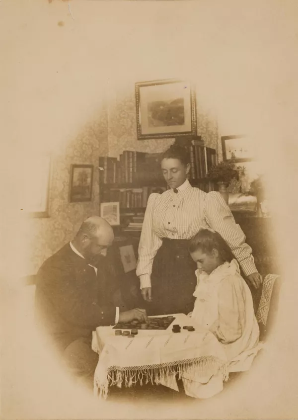 Playing draughts (William James and Robina Isabella Dodge with Ethel Edith Anna Dodge)