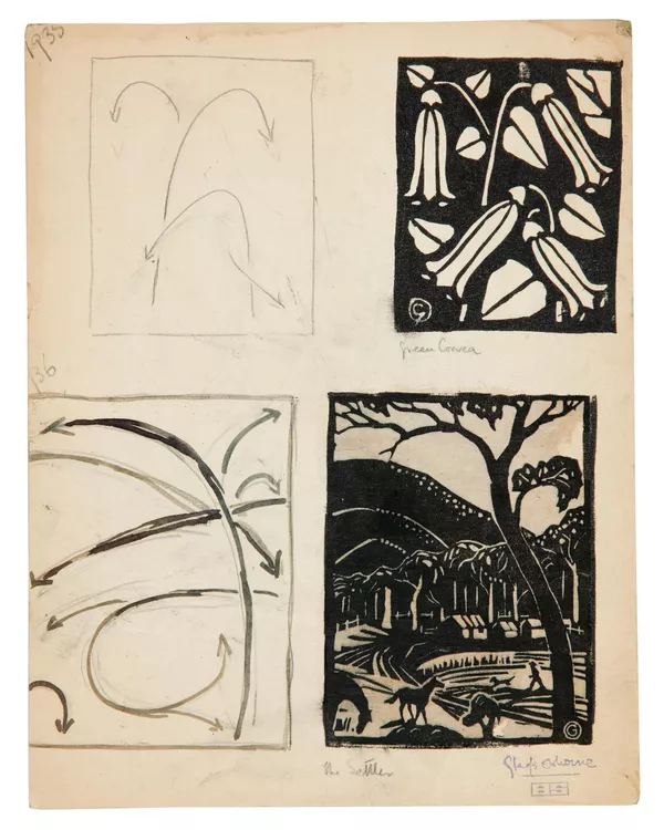 Study of Green Correa (Wild fuschia) and 'The Settler' prints
