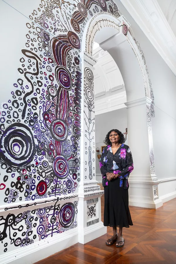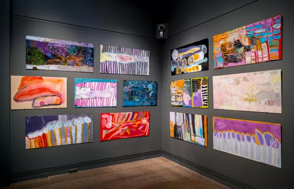 Painting installation inspired by Pitjantjatjara artist Rhoda Tjitayi